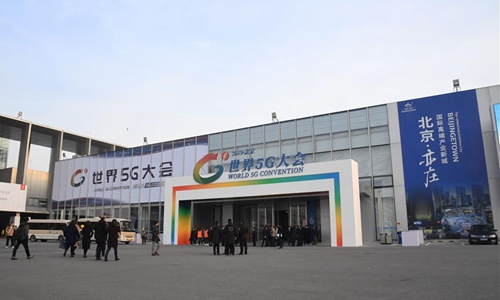 Photo taken on Nov. 20, 2019 shows the venue for the 2019 World 5G Convention during a press preview in Beijing, capital of China. The 2019 World 5G Convention will open on Nov. 21. (Xinhua/Ren Chao)