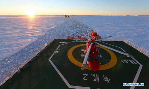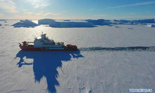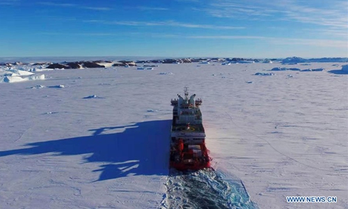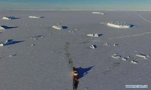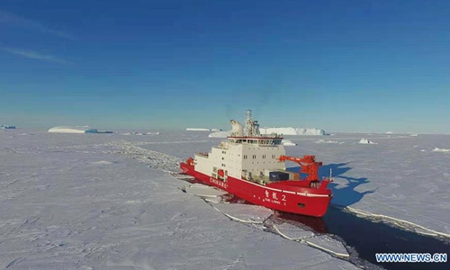 China's polar icebreaker Xuelong 2 breaks ice in the waters in Antarctica, Nov. 22, 2019. (Xinhua/Liu Shiping)