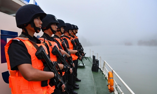Law enforcement officers start the 79th Mekong River joint patrol of China, Laos, Myanmar and Thailand in February. Photo: VCG
