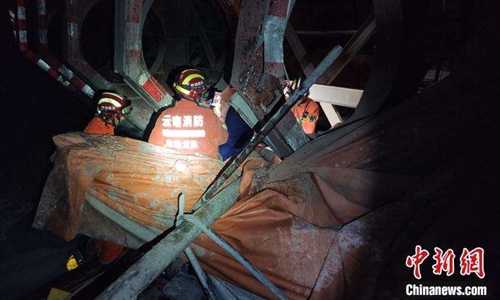 Eight people are still trapped as of Wednesday morning after a highway tunnel under construction collapsed in southwest China's Yunnan Province, local authorities said.