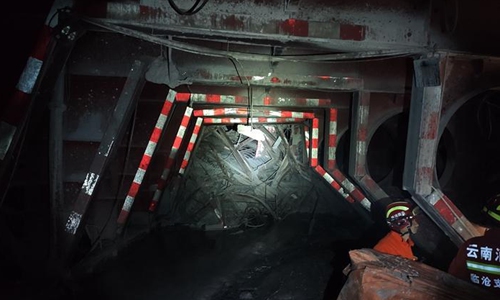 The water and mud bursting occurred at around 6 p.m. Tuesday in the city of Lincang, trapping 13 workers in the tunnel. The city government said five were rescued later, but four of whom died.