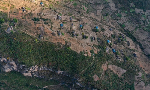 Aerial photo taken on Nov. 23, 2019 shows a part of Atulie'er Village, Zhaojue County. (Xinhua/Wang Xi)