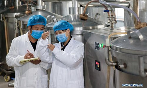 Technicians detect a non-alcohol drink made of bamboo in a biotechnology company in Anji County, east China's Zhejiang Province, June 3, 2016. Anji is known for its pleasant environment with flourishing bamboo plantations and many scenes from the famous movie "Crouching Tiger, Hidden Dragon" were shot here. The county persists in green, low-carbon development, and strives to protect environment as well as to develop local economy. China has pledged to coordinate its efforts of environmental protection and economic development in 2019, an important year for winning the tough battle against pollution. At the annual Central Economic Work Conference earlier this month, authorities called for building on this year's achievement in pollution control, making more efforts and input in 2019. Since the turn of this year, China has made solid efforts to combat pollution and seen constant improvement of the environment. The Central Economic Work Conference made it clear that local governments must avoid past simple and unscrupulous practices in dealing with environmental problems. (Xinhua/Tan Jin)