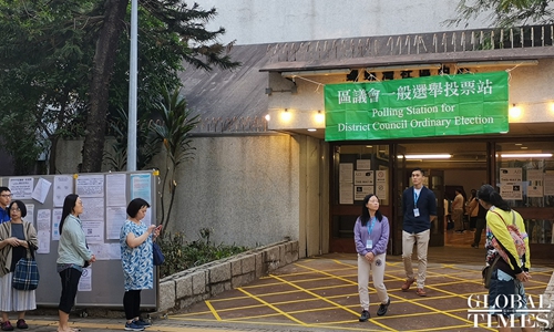 HongKongers on Sunday line up in front of the different polling stations across the city, voting for District Election Council. Photo: Yang Sheng/GT