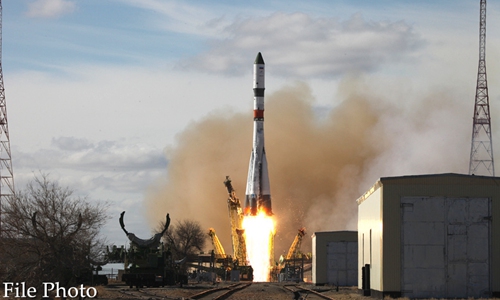 The Soyuz-2.1a carrier rocket carrying a Progress MS-11 cargo ship blasts off to the International Space Station (ISS) from the launchpad at the Baikonur Cosmodrome, Kazakhstan on April 4, 2019. (Roscosmos Photo)