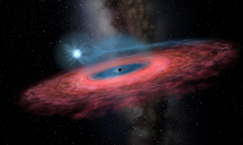 A Chinese-led research team has discovered a surprisingly huge stellar black hole about 15,000 light years from Earth with a mass 70 times greater than the Sun. Researchers named the hole LB-1. Photo: Xinhua