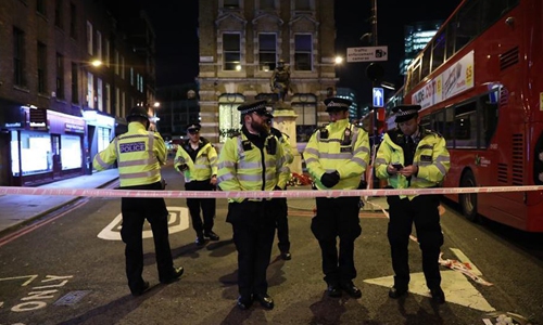 Police officers cordon off the scene in the south side of London Bridge following an attack in London, Britain, on Nov. 29, 2019. (Photo: Xinhua)