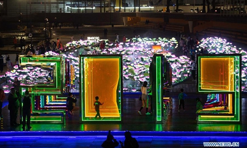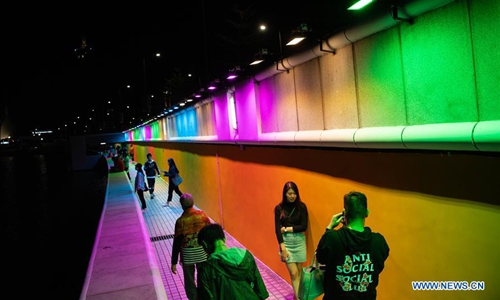 Visitors enjoy the night views during the 2019 Macao Light Festival in south China's Macao, Dec. 1, 2019. (Xinhua/Cheong Kam Ka)