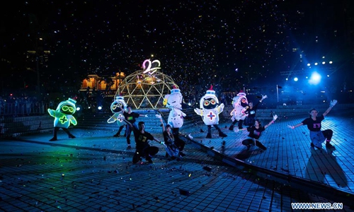 Performers are seen during the opening ceremony of the 2019 Macao Light Festival in south China's Macao, Dec. 1, 2019. (Xinhua/Cheong Kam Ka)