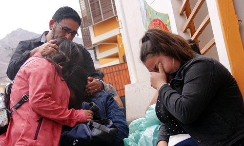 Family members of the victims are in great pain outside the Legal Medical Service, in Taltal, Antofagasta province, Chile, on Dec. 2, 2019. (Xinhua/Edgard Cross-Buchanan/AGENCIAUNO)