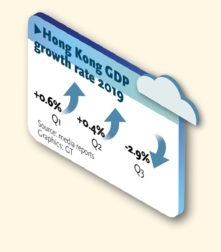 The city recorded its biggest retail slump in October, a drop of 24.3 percent year-on-year, and the HKSAR government is poised to experience the first budget deficit in 15 years in the fiscal year that ends in March 2020.Some raised questions about whether protesters expect a recession, and several prominent economists predicted that Asia's financial hub is quite likely to see an economic contraction in 2020, which will take a toll on financial market.