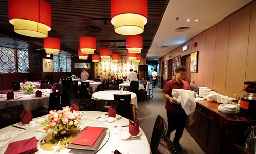Photo taken on Aug. 20, 2019 shows an indoor view of Hangzhou Restaurant in Hong Kong, south China. (Xinhua/Qin Qing)