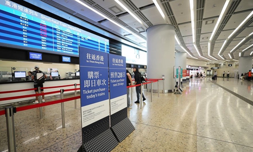 Photo taken on Oct. 2, 2019 shows a view of West Kowloon High-speed Railway Station in Hong Kong, south China. (Xinhua/Lu Ye)