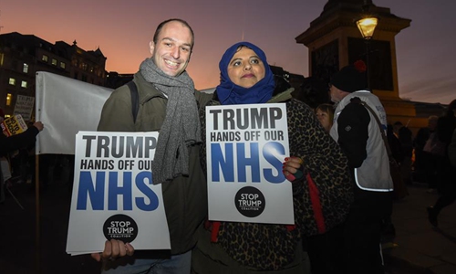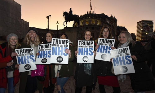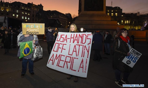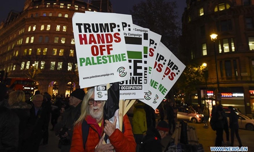 People take part in a "No to Trump - No to NATO" demonstration in London, Britain, Dec. 3, 2019. (Photo by Stephen Chung/Xinhua)