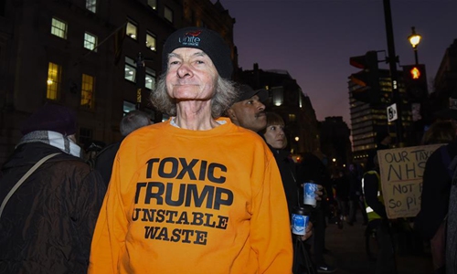 A man takes part in a "No to Trump - No to NATO" demonstration in London, Britain, Dec. 3, 2019. (Photo by Stephen Chung/Xinhua)