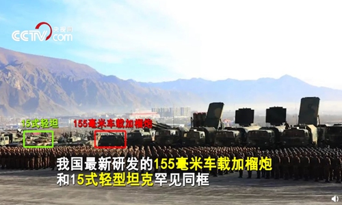 China's latest weapons including the Type 15 tank and 155-millimeter vehicle-mounted howitzer are deployed in the People's Liberation Army Tibet Military Command. Photo: Screenshot from China Central Television.