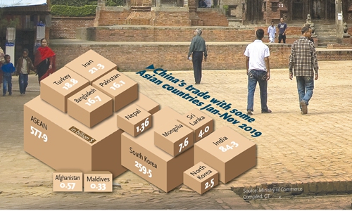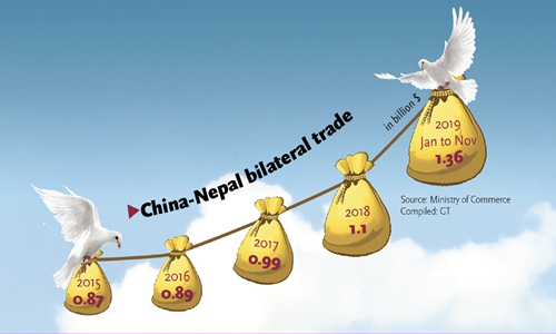 In the first 10 months of 2019, trade between China and Nepal hit $1.2 billion, up 36.1 percent year-on-year.