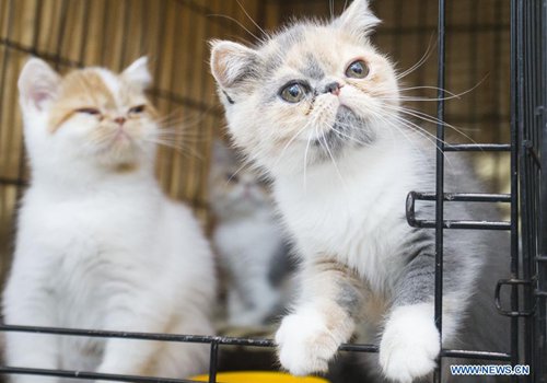Pet cats are seen during the Cat Show of the 2019 Canadian National Exhibition in Toronto, Canada, on Aug. 25, 2019. More than 100 pet cats across Ontario were showcased in display and competition on Sunday. (Photo: Zou Zheng/Xinhua)