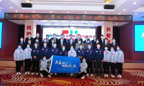 China Railway Construction Corporation held a farewell ceremony on April 7 for a 15-member medical team to be sent to Abuja, Nigeria on April 8 to aid its battle against COVID-19. Photo: Huanqiu.com