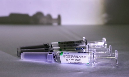 Samples of the COVID-19 inactivated vaccine are seen at a vaccine production plant of China National Pharmaceutical Group (Sinopharm) in Beijing, capital of China, April 10, 2020.Photo:Xinhua
