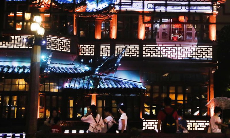 Photo taken on Aug. 28, 2020 shows a night view of Yuyuan Garden in east China's Shanghai.Photo:Xinhua