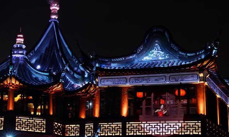 A performer plays the violin in Yuyuan Garden in east China's Shanghai, Aug. 28, 2020.Photo:Xinhua