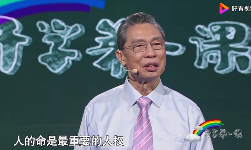 "People's lives are the most important human right," Zhong, who was awarded the Medal of the Republic in August for his outstanding contributions to China's fight against COVID-19, said at the annual national TV program, "First Class for the New Term."