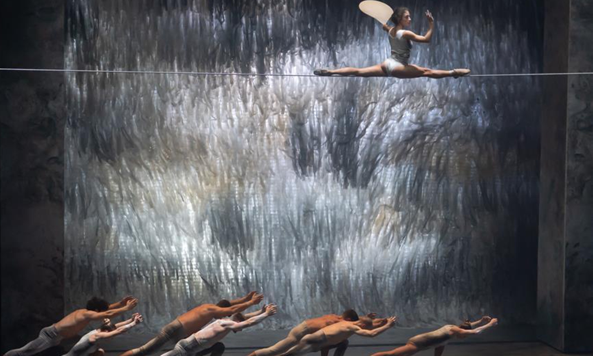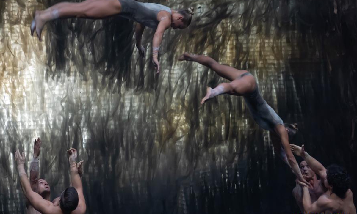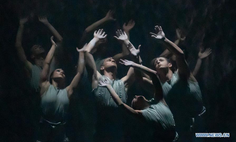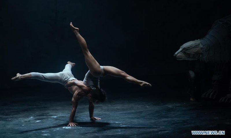 Members of the Recirquel circus company perform during their new show Solus Amor, which is presented as part of the CAFe Contemporary Art Festival at the Palace of Arts in Budapest, Hungary, on Nov. 2, 2020. (Photo by Attila Volgyi/Xinhua)