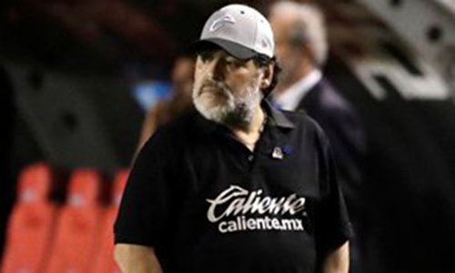 Dorados coach Diego Maradona during the match against Atletico San Luis on May 5 in San Luis Potosi, Mexico. Photo: VCG