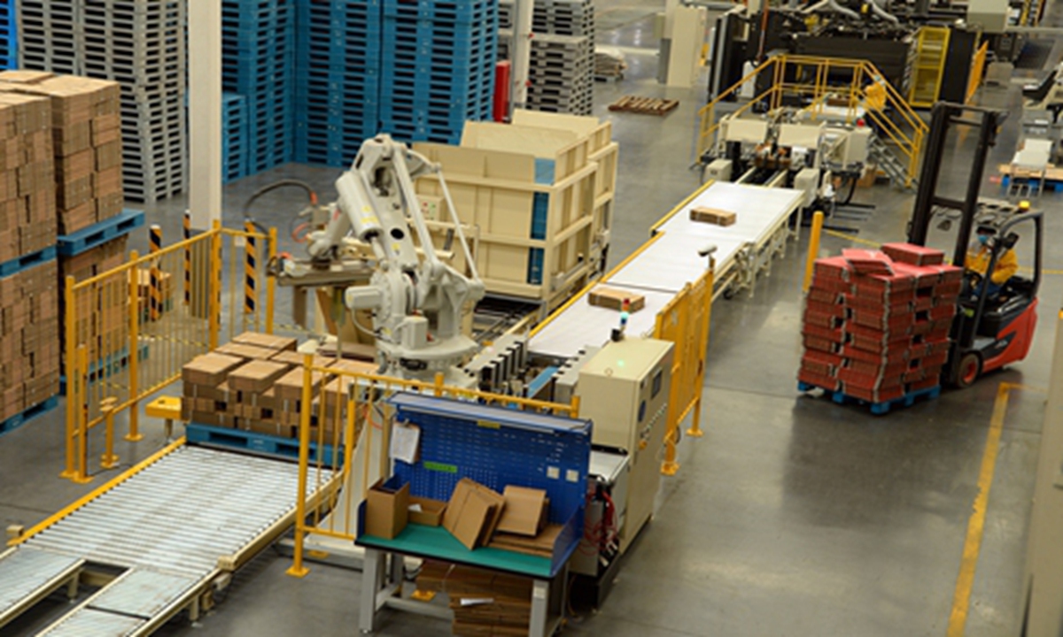 A robot arm helps pack components in a traditional manufacturing facility in Taicang, East China's Jiangsu Province. Photo: cnsphotos