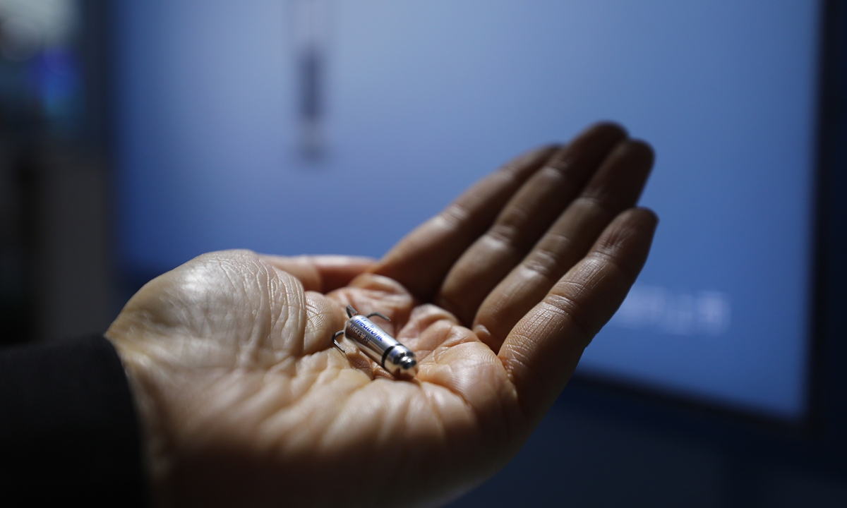 The world's smallest pacemaker Medtronic Micra is displayed at the exhibition. Photo: Yang Hui/GT