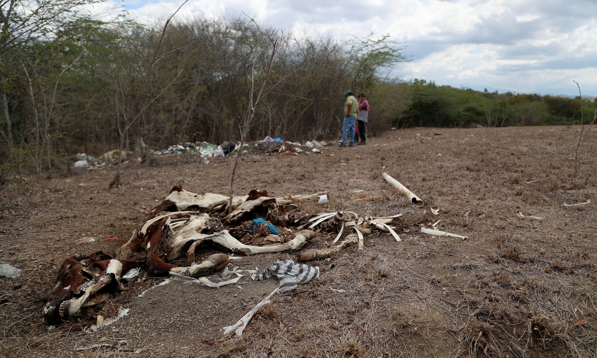 The carcass of a cow is seen at a ranch as the Dominican Republic endures its worst drought in 30 years on March 16, 2019. Photo: VCG