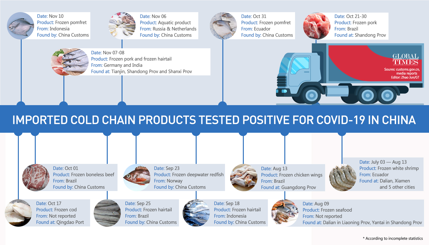 Imported COVID-19 cases via cold-chain food are ascending, which shows that, despite the containment of the pandemic with China, the outbreaks abroad continue to pose a severe challenge to the country.