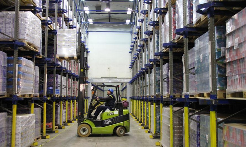 Photo taken on April 19, 2017 shows a worker operating a forklift to arrange finished products at a milk plant in Lowicz, Poland. The European Union (EU) is one of the largest milk suppliers to Chinese market, with Poland accounting for a share of 12.7%, according to Director of Polish Milk Chamber Agnieszka Maliszewska. Statistics from Poland's Ministry of Finance show that, despite the impact of COVID-19, the export of dairy products from Poland to China grew by 70% year on year in the first half of 2020. Recently, batches of Polish dairy products took freight trains to China for the occassion of Single's Day shopping festival in the country. (Xinhua/Chen Xu)