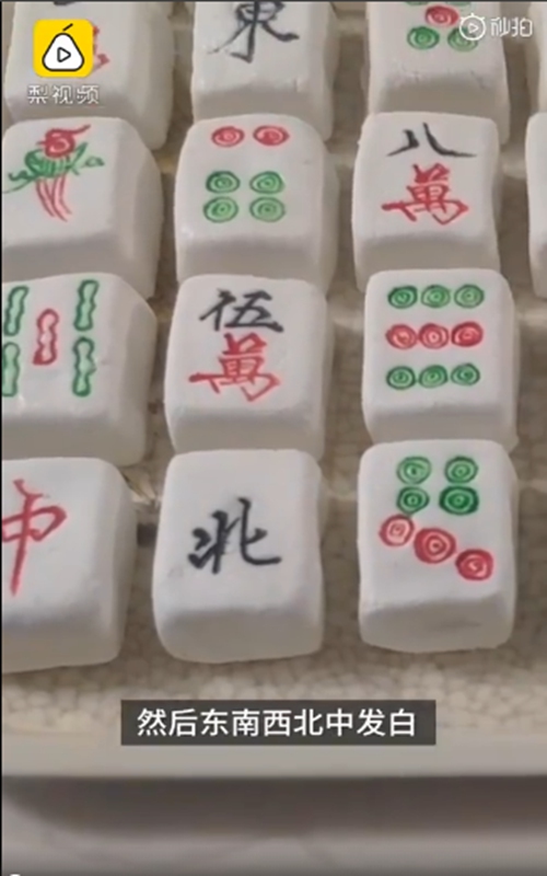 It normally takes two people three hours to make the dumplings, and about one hour to draw a whole pack of mahjong, which contains 42 pieces, Yang explained, adding that they use food coloring to draw the patterns so they are safe to eat.