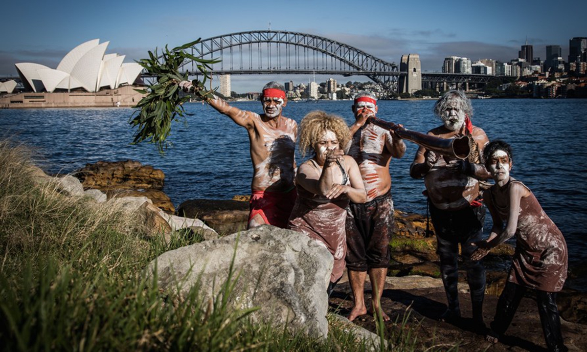 Aboriginal people dance at Sydney harbor, Australia, Nov. 11, 2020. (Photo by Zhu Hongye/Xinhua)