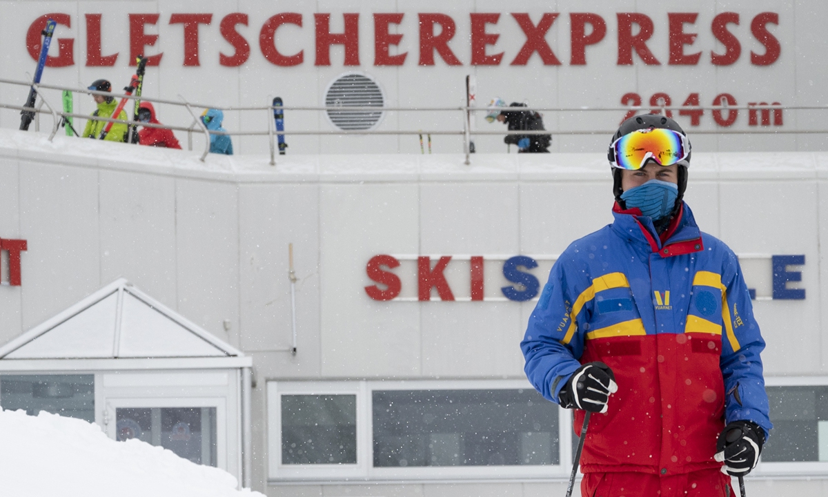 Barriers in front of cable cars ensured orderly queuing, the number of people allowed inside the train linking the valley to the glacier was cut by half, and masks were mandatory.