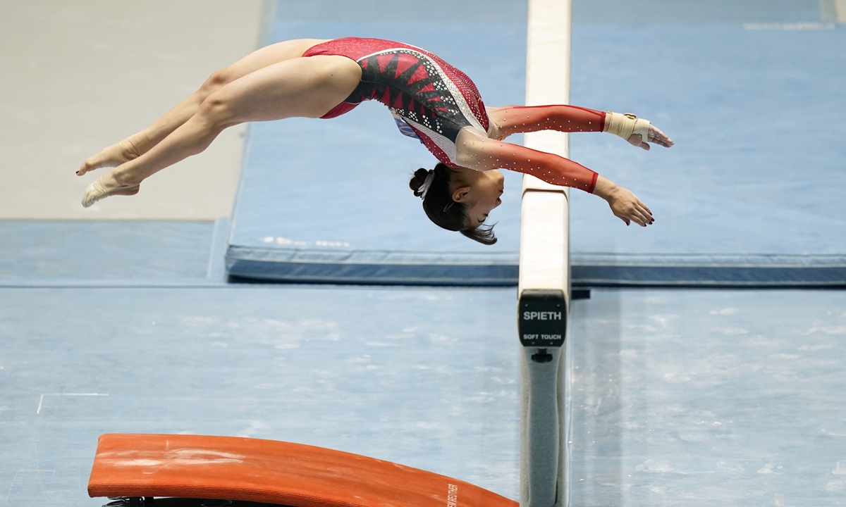 Asuka Teramoto of Japan competes on the balance beam on November 8 in Tokyo. Photo: VCG