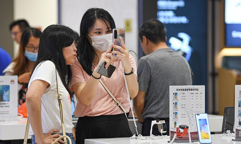 Customers select products at a duty-free shop in Haikou, south China's Hainan Province, Oct. 4, 2020. China's resort island province of Hainan raked in 1.04 billion yuan (about 155 million U.S. dollars) in duty-free sales during the National Day holiday, an increase of 148.7 percent year on year, according to customs authorities.Photo:Xinhua