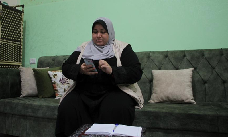 Palestinian Nayla Abu Jubbah, sits at her office in Gaza City, on Nov. 18, 2020. Nayla, 39, is the first female taxi driver in the Gaza Strip, she started a small taxi office to deliver women only and called it "Al-Mukhtara Taxi". (Photo by Rizek Abdeljawad/Xinhua)