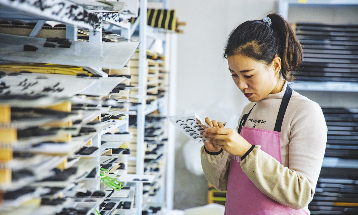 The increase in importance of false eyelashes can be seen in the increase in production at a factory in the small town of Pingdu, East China's Shandong Province. Chen Chunjie is the manager of the factory, which along with more than 800 other manufacturers in the town forms a false eyelash empire that meets the needs of about 70 percent of people around the world.
