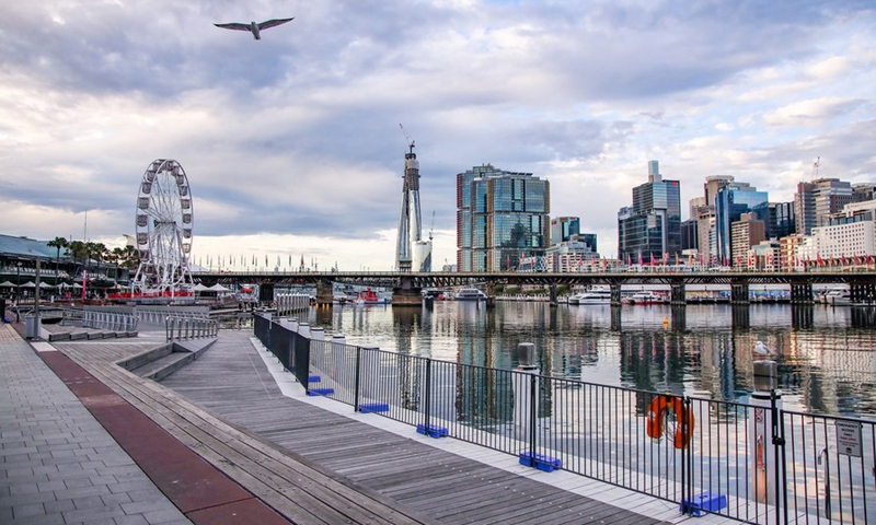 Photo taken on March 30, 2020 shows the view of empty Darling Harbour in Sydney, Australia. (Xinhua/Bai Xuefei)