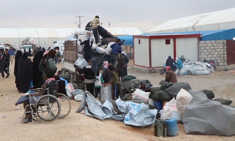 Displaced people prepare to leave the al-Hol camp in the northeastern province of Hasakah, Syria on Nov. 16, 2020. (Str/Xinhua)