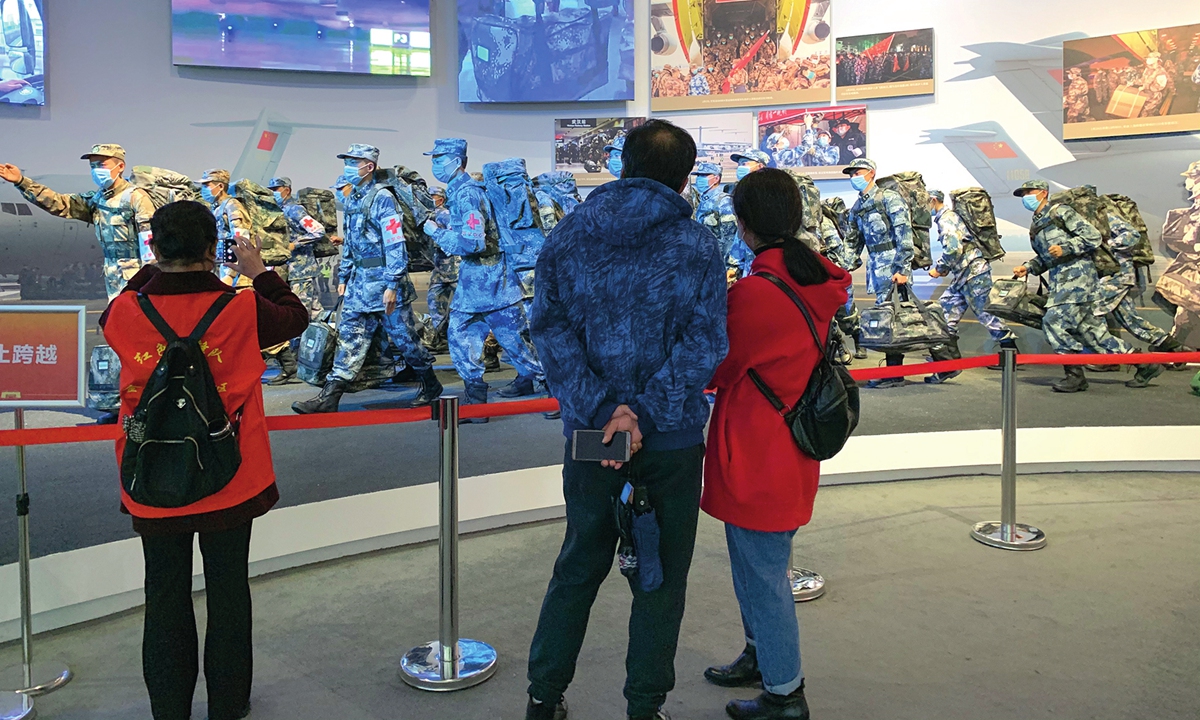 A 1,445-meter exhibition center was filled with 6,000 items including photos, videos, physical exhibitions, large-scale scenes, and interactive projects telling touching stories of how Wuhan people fought the coronavirus.