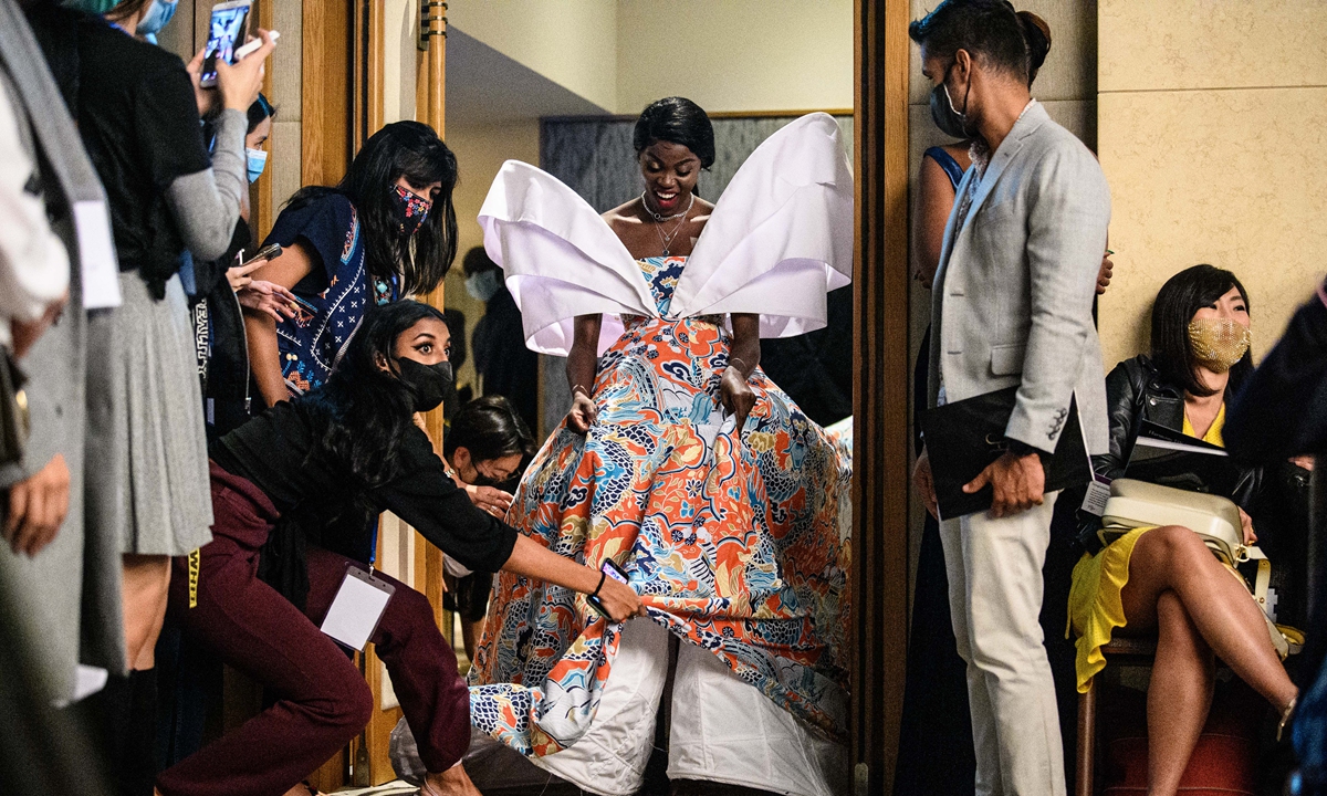Harmony Anne-Marie Ilunga prepares to take to the catwalk during the "Harmony IV" fashion show in Hong Kong on November 6. Photo: AFP