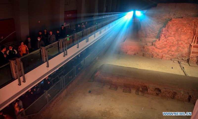 Visitors attend the "Museum is Reviving" event at the Xi'an Tang Hanguang Gate Museum in Xi'an, northwest China's Shaanxi Province, Nov. 28, 2020. The two-day event opened here on Saturday. (Xinhua/Tao Ming)