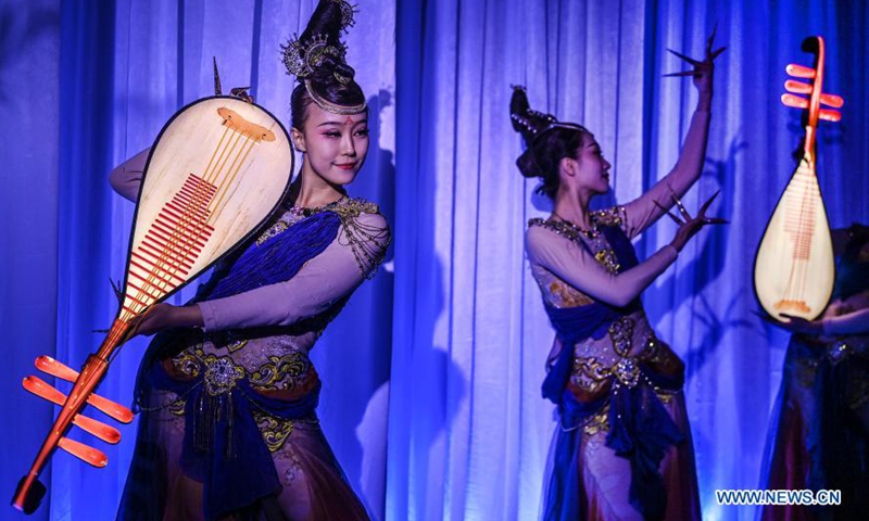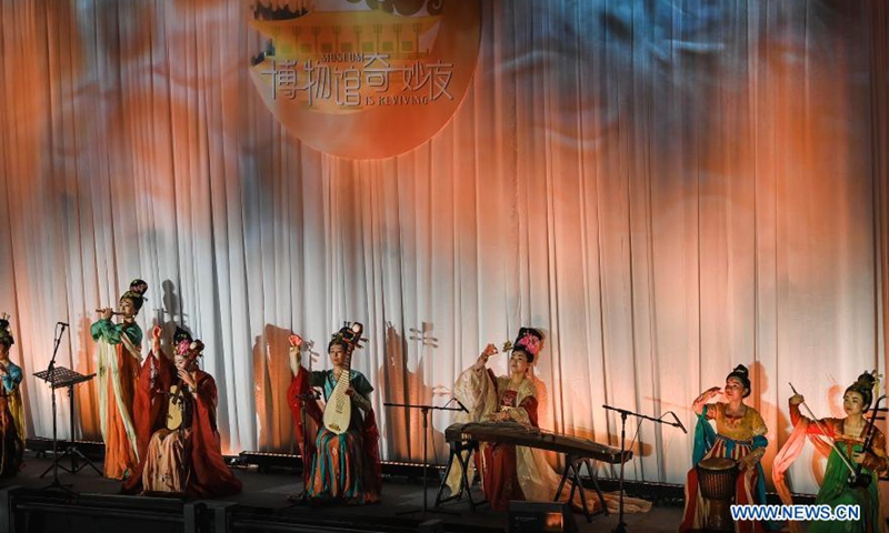 Artists in antique costumes perform during the "Museum is Reviving" event at the Xi'an Tang Hanguang Gate Museum in Xi'an, northwest China's Shaanxi Province, Nov. 28, 2020. The two-day event opened here on Saturday. (Xinhua/Tao Ming)