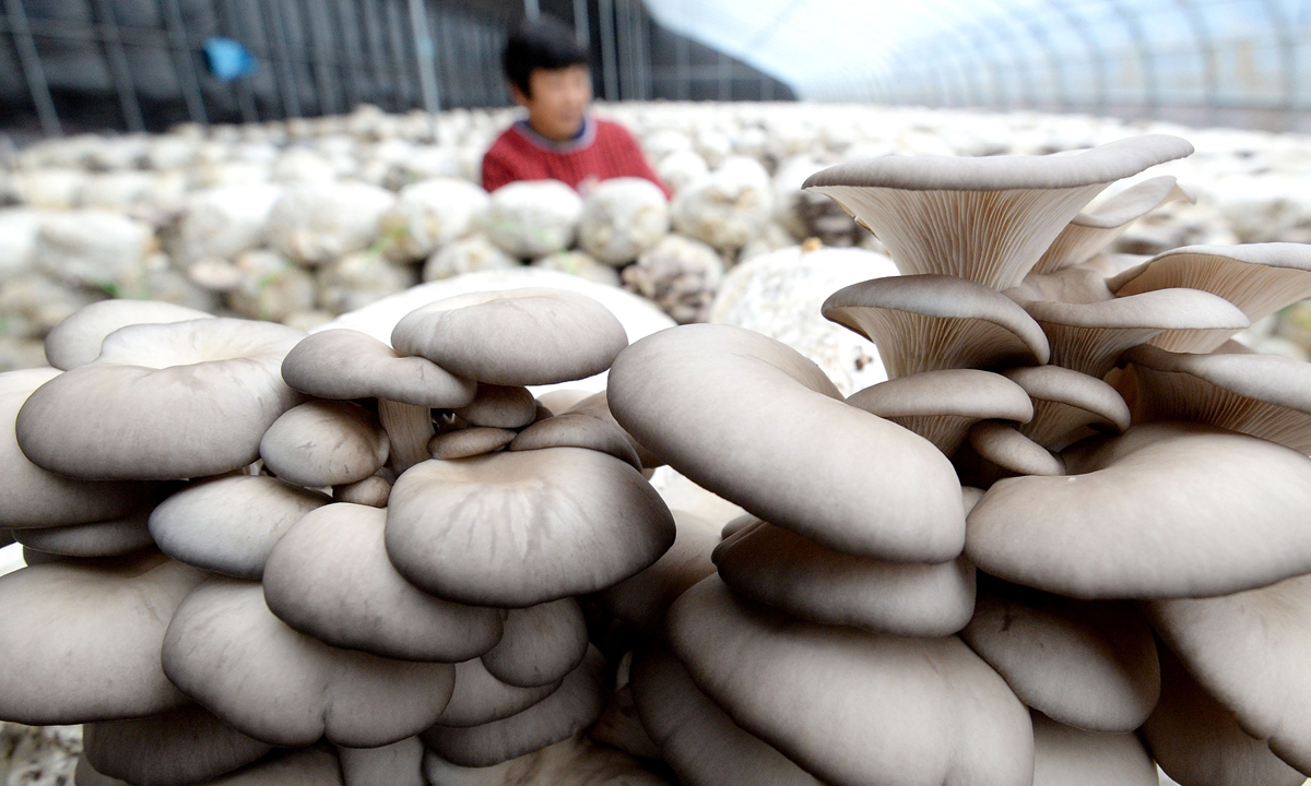 Farmers harvest mushrooms in a greenhouse in Qifu village in Handan city, North China’s Hebei Province on Wednesday. Local authorities have encouraged farmers to learn advanced technology and develop the edible fungus sector, which has become the main income source for many local residents. Photo: cnsphoto