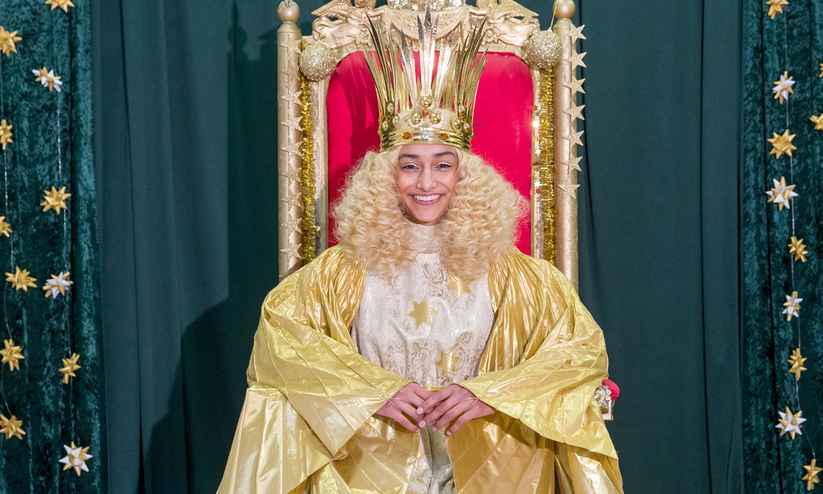 The Nuremberg Christ Child, Benigna Munsi, sits in her robe on a chair in Nuremberg City Hall on Friday as a prologue to the city's Christmas Market, which was later canceled. Photo: AFP