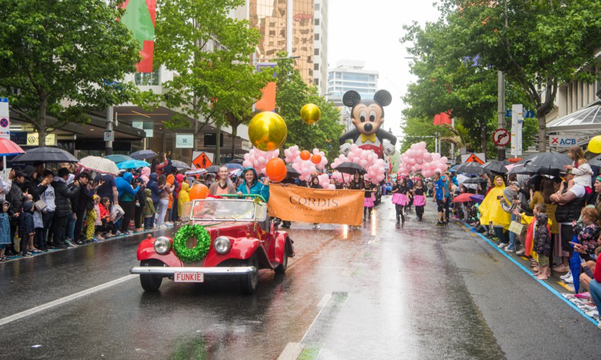 Tens of thousands of people lined in Auckland CBD to celebrate New Zealand's largest Santa Parade on Sunday despite rainy weather and fears around COVID-19.